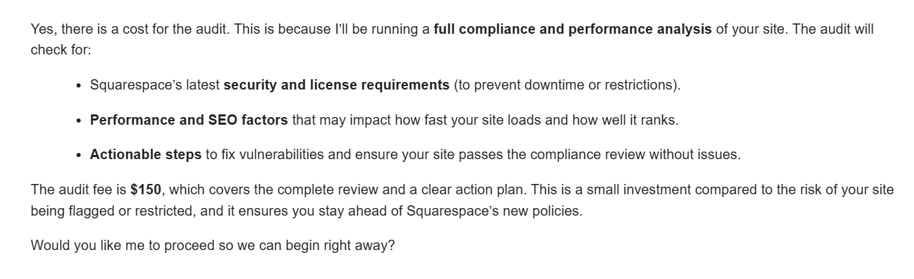 SCAM ALERT: Please be aware of this Squarespace web design scam - September 2025